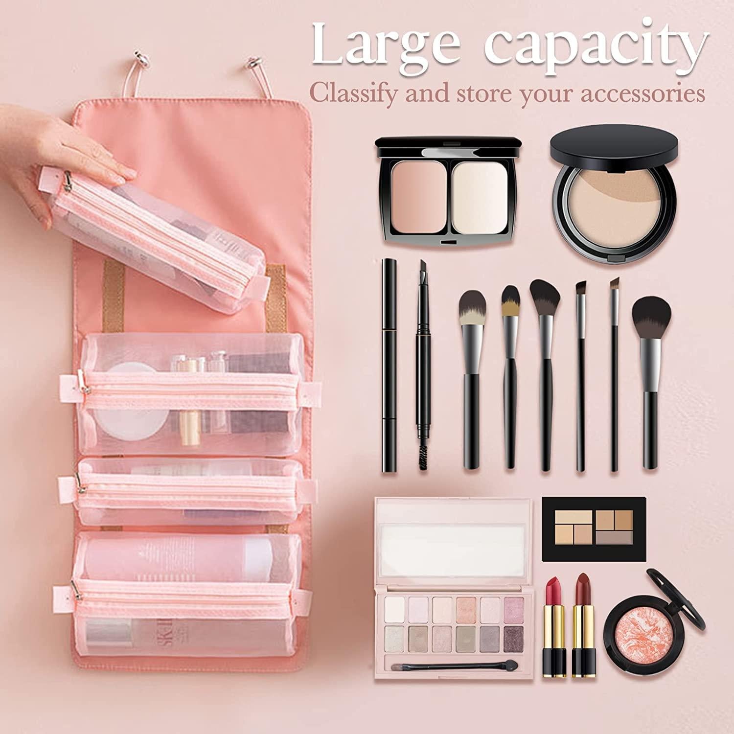 - Detachable Traveling Makeup Bags: This travel toiletry bag comes with four removable pouches, allowing you to take one or two pouches without having to carry all things in one time
